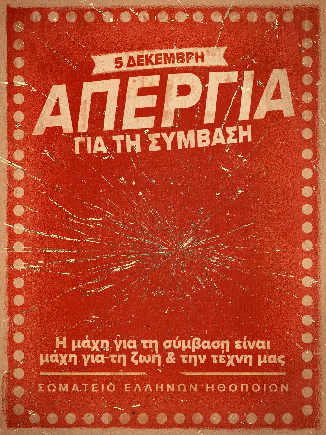 Καλούμε όλους και όλες στην απεργιακή συγκέντρωση του Σωματείου Ελλήνων Ηθοποιών, αύριο, Παρασκευή 5 Δεκεμβρίου στις 19:00, έξω από το θέατρο «Παλλάς», Βουκουρεστίου 5, Αθήνα.