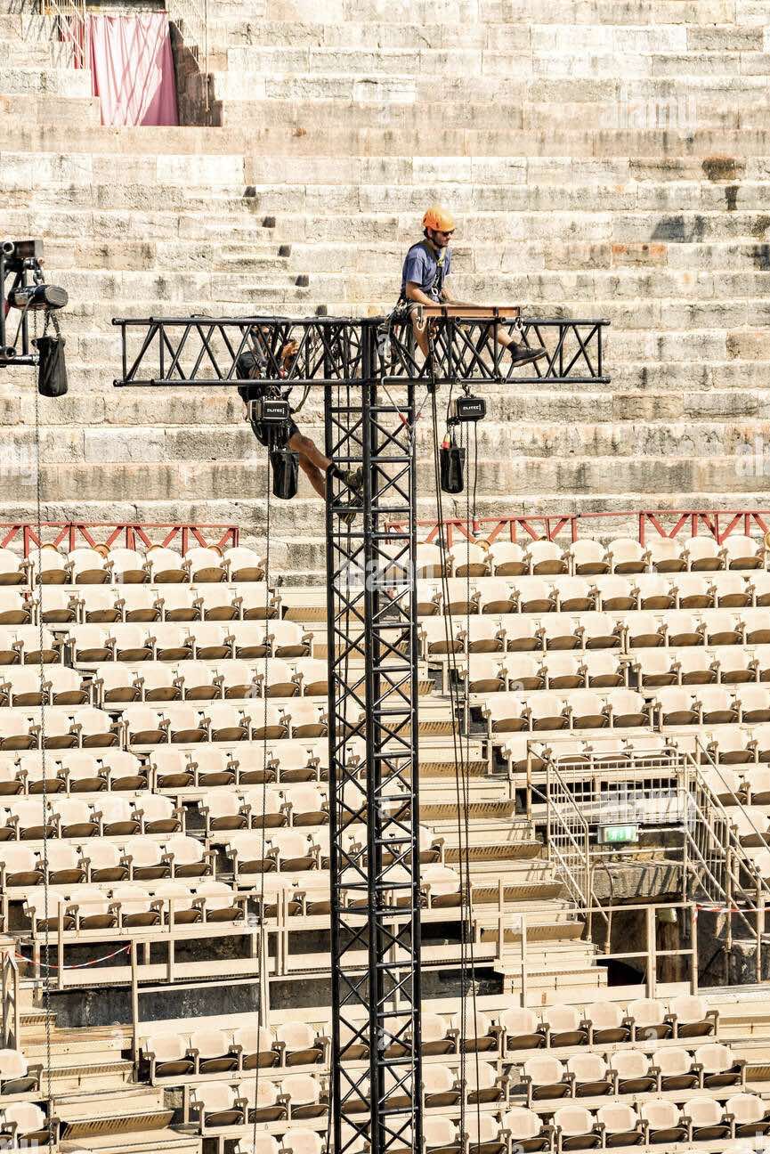 Εναερίτης - rigger: Είναι ο τεχνικός που εργάζεται σε ύψος στο τμήμα της κατασκευής των ικριωμάτων και της σκηνής. Επίσης, συνεργάζεται με το τμήμα του φωτισμού και του ήχου όταν χρειάζεται εργασία σε μεγάλο ύψος.